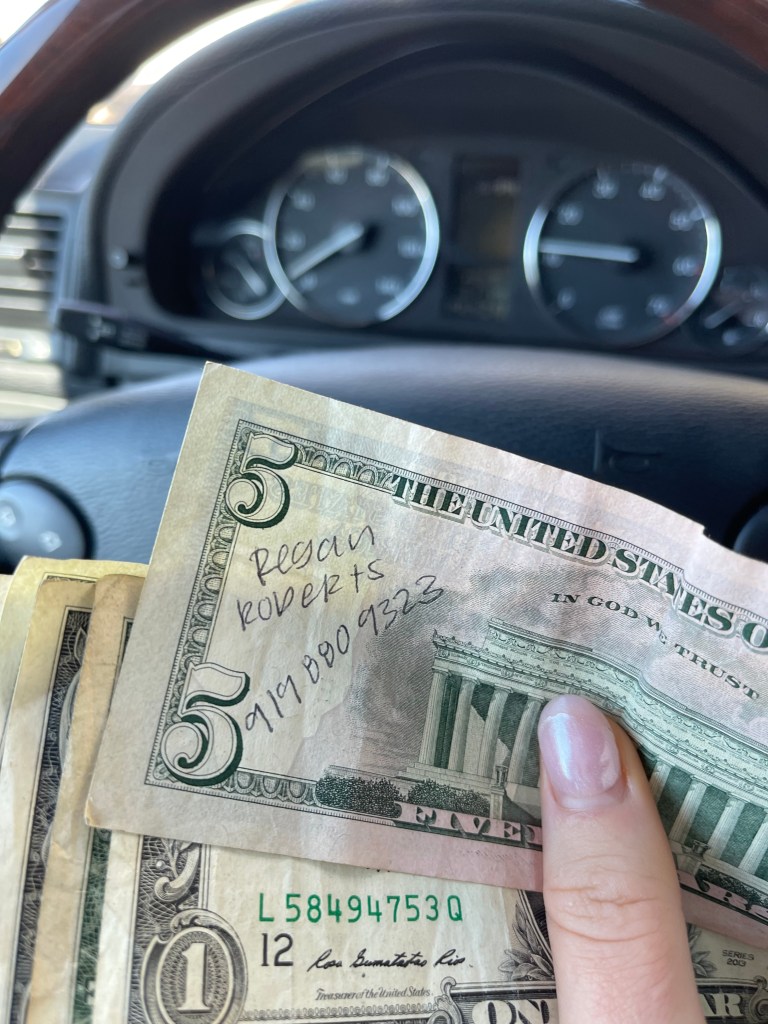 I watched the movie Serendipity with one of my friends for the first time about 2 years ago. It is pretty much a romantic movie and the girl does not want to give the boy she meets her number because she believes in faith and wants it to happen more naturally. She writes her name on a dollar and then buys something with it and says that if the dollar ever comes back to him then it is meant to be. Obviously in the real life he would most likely never find that dollar, but it was a cute and creative idea for the plot of the movie. My friend wrote her name and number on this five dollar bill just because it seemed fun and was inspired after watching the movie. The other day I was cleaning out my car and had some cash I needed to organise and found it! I was so excited because it had been a good amount of time and I totally forgot that she did that. It would have been so crazy if I found this like 20 years later and we are still friends.